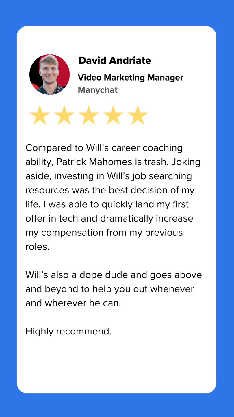 I've also received $200K+ job offers to be an Account Executive, Program Manager, and Recruiter despite having zero experience in those job functions.